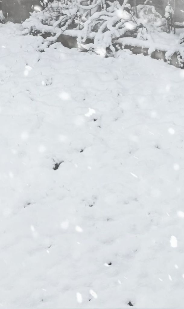 Snow fell heavily on the village as night approached but the white covering on the ground and on the rooftops from the blizzard shone brightly in the darkness. The falling flurries of snow quickly covered the footsteps made during the day by the few villagers that had braved the bitter weather before retreating to their homes to huddle around fires and under blankets.